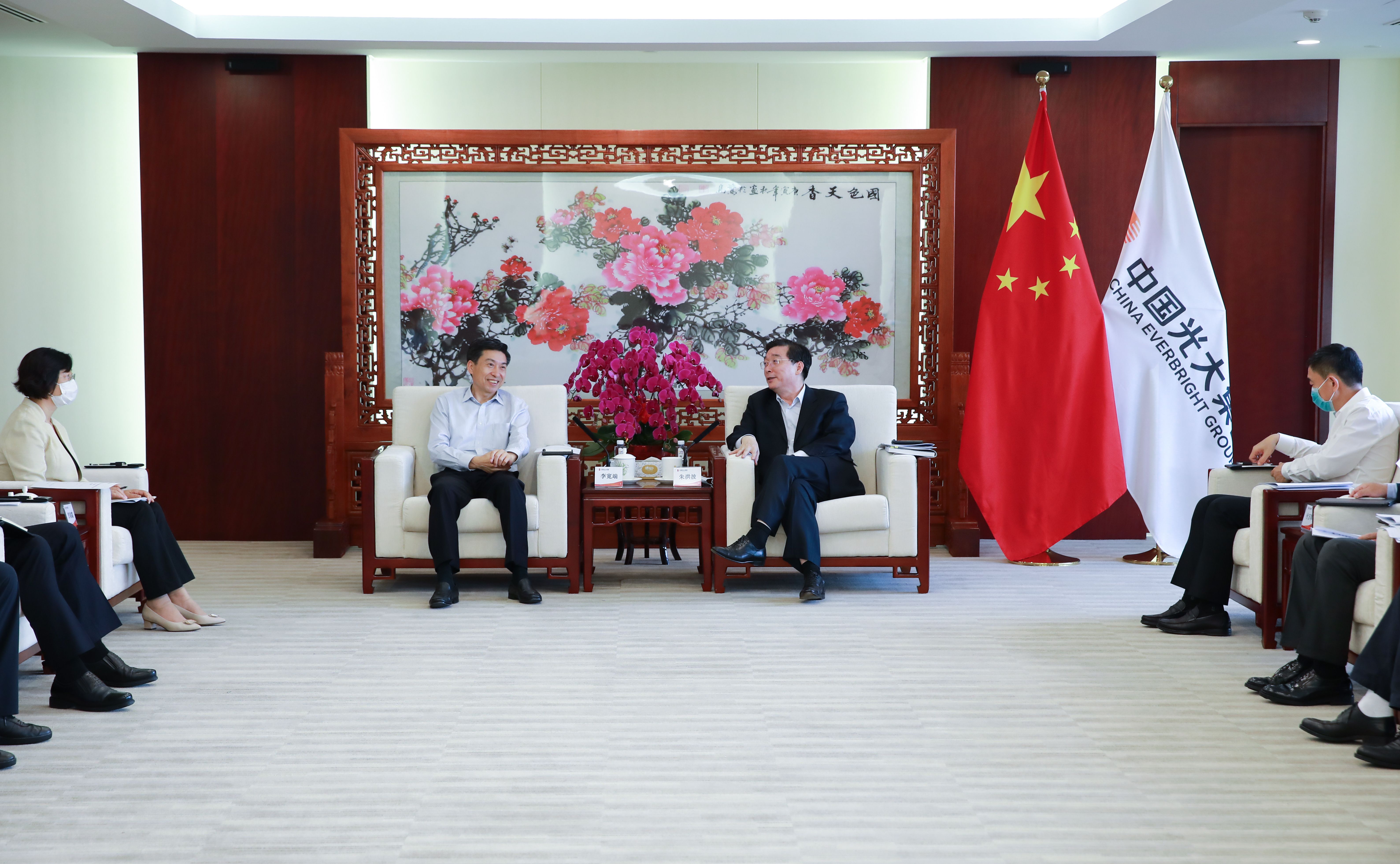 6月2日,光大集团党委副书记、监事长朱洪波在中国光大中心会见了山东省东营市委书记李宽端,就推进双方战略合作举行会谈。