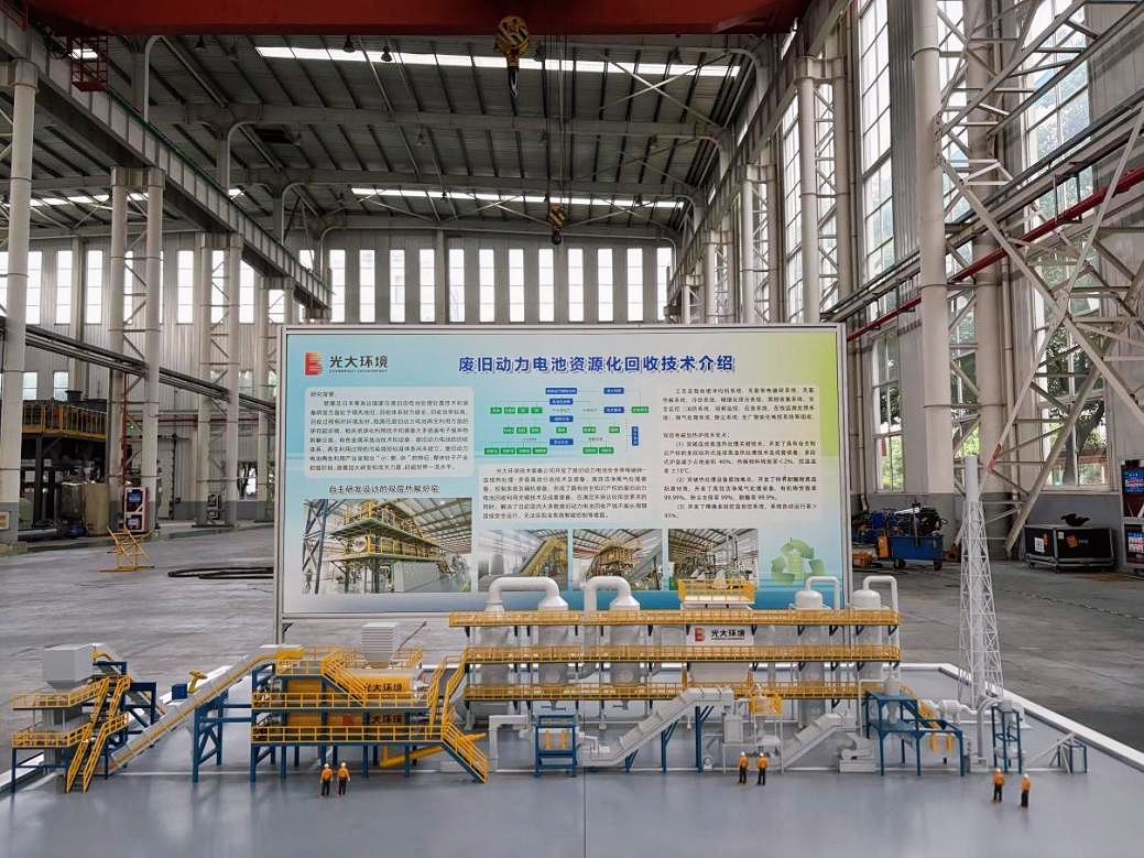 ??光大环境技术团队研发的废旧动力电池“安全带电破碎、高效梯度热解、清洁烟气处理”等核心技术,实现了电池在带电状态下的安全破碎,处理效率较常规处理提高30%,多级电磁热解炉窑控温精度可达±1℃,多级湿法脱氟效率超99.9%,自主开发的全厂自适应调节的自动控制技术可使全厂设备、系统“一键启?!?,单台成套装备年废旧动力电池处理量可达5000吨-30000吨。通过光大环境自主研发的多项技术成果,实现了废旧动力电池的安全处理及高效资源化,确保生产流程绿色、安全、稳定。
